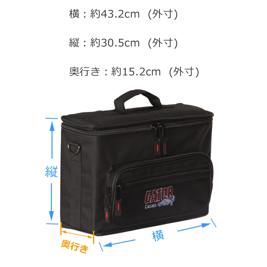 | ・GM-5W ・ワイヤレスマイクシステムケース ●ケース全体サイズ(外寸) ・横:約43.2cm、縦:約30.5cm、奥行き:約15.2cm ●ボディパック送信機等収納部分 サイズ(内寸) ・幅:約21.6cm、深さ:約17.8cm、奥行き:約10.2cm ・ワイヤレスマイク:5本収納可能 ・手持ちハンドル付き ・取り外し可能なショルダーストラップ付き ・小物ポケット付き ・メッシュポケット ・保護パッドでケース内部を補強 |