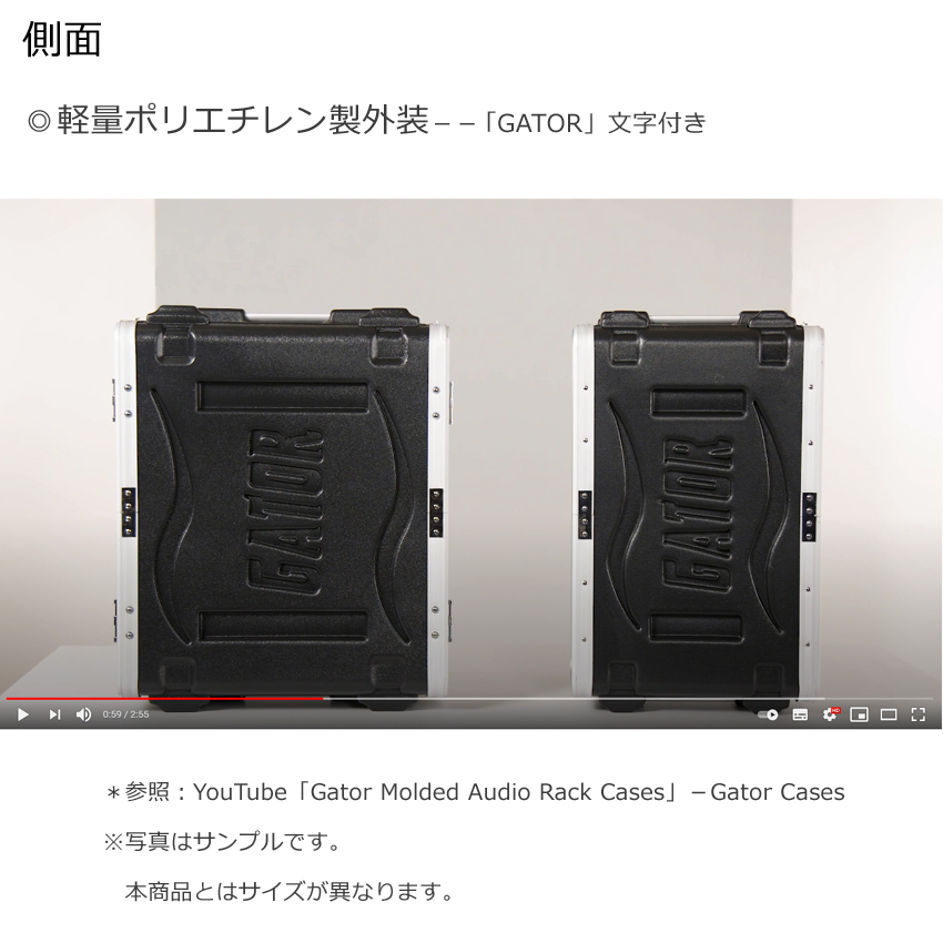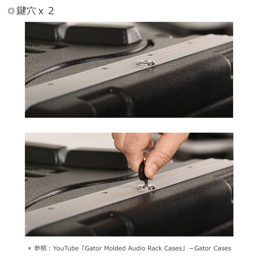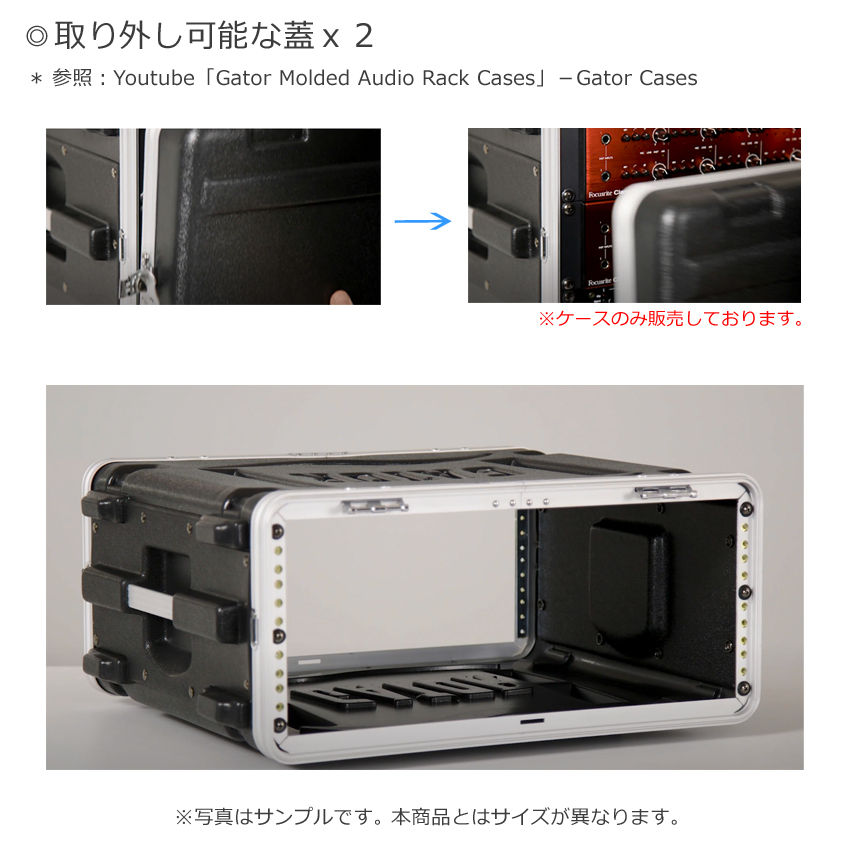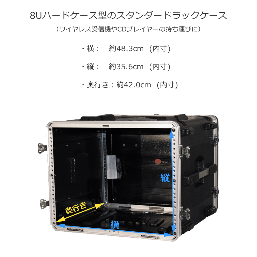 | ・GR-8L ・スタンダードラックケース ●サイズ(内寸) ・横:約48.3cm、縦:約35.6cm、奥行き:約42.0cm ・手持ちハンドル ・ポリエチレン製脚付き ・ツイストラッチ付き(ロック可能) ・ラックレール付き(固定用ネジ付属) ・ケース上部分、下部分取り外し可能 ・鍵穴付き |