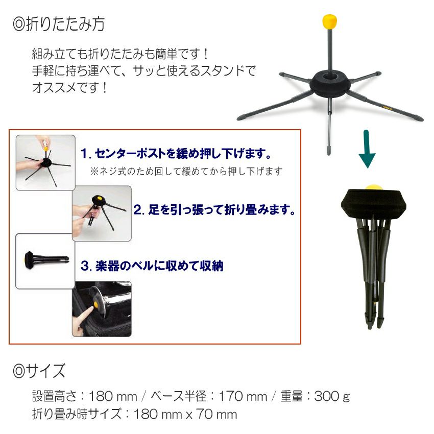 他の画像を見る 許容荷重5kg 重量0.28kg 収納用 巾着袋付き HERCULES ハーキュレス DS410B トランペット コルネット スタンド 5本脚 分解不要 K&M (ケーアンドエム) より組み立て簡単 ベル中に収納しケースにまとめて入る 販売価格 ¥ 2,084 税込 在庫切れ 詳細を見る お気に入りに登録する