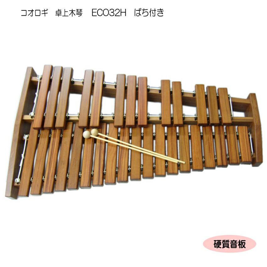 コオロギ社は、コンサート用のマリンバなどで国内外で有名ですが、そのコオロギ社が卓奏用のリーズナブルな木琴(シロホン)「ECO32」を発売し取り扱いを始めて、当店でも大変人気の機種です。その「ECO32」より硬質の音板を採用し、耐久性に優れているのが本商品になります。
