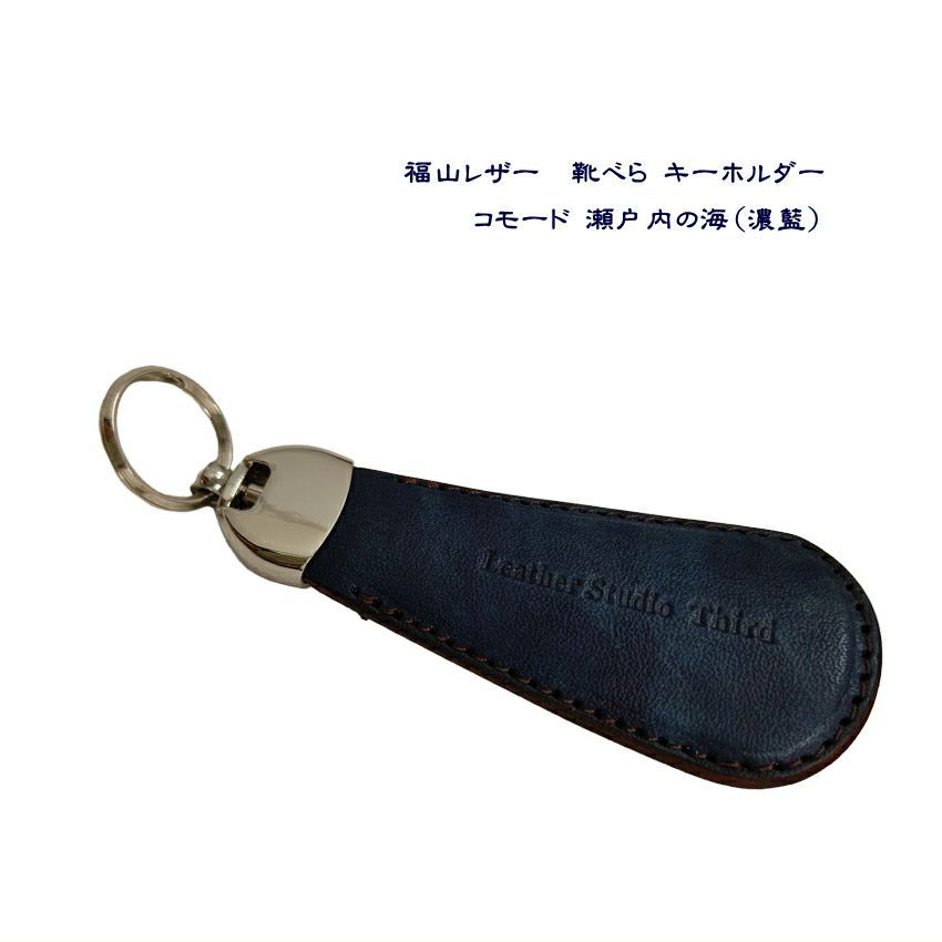 福山レザー 靴べら キーホルダー 瀬戸内の海 濃藍 革