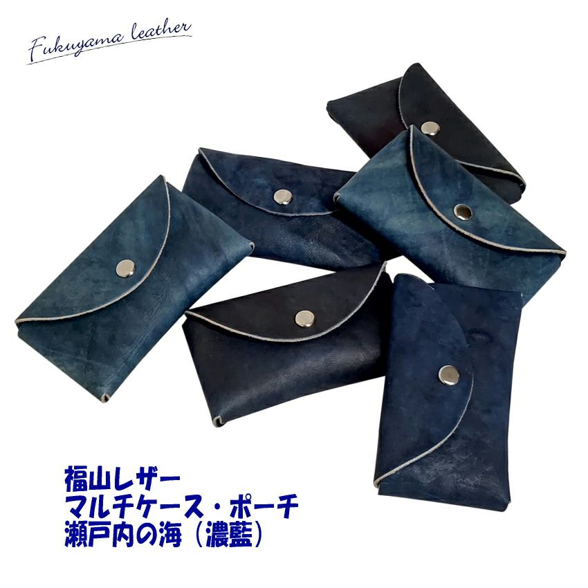 福山レザー マルチケース 瀬戸内の海 濃藍 小銭入れ 使い方いろいろ おしゃれ ユニーク