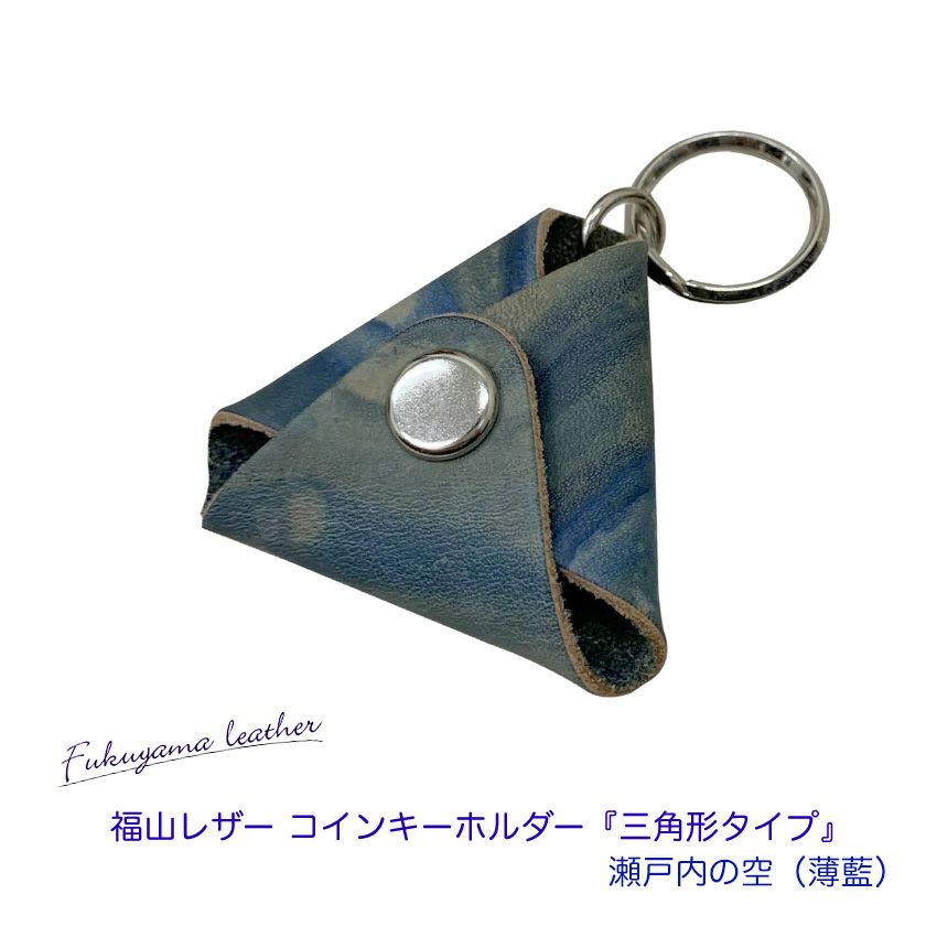 福山レザー 500円玉 キーホルダー 瀬戸内の空 薄藍 おしゃれ スマート 一品物【メール便対応 10点まで】