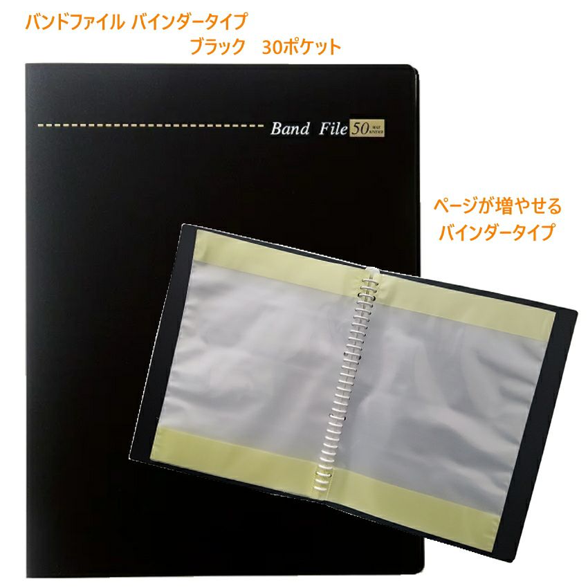 書き込める バンドファイル バインダータイプ 30ポケット ブラック