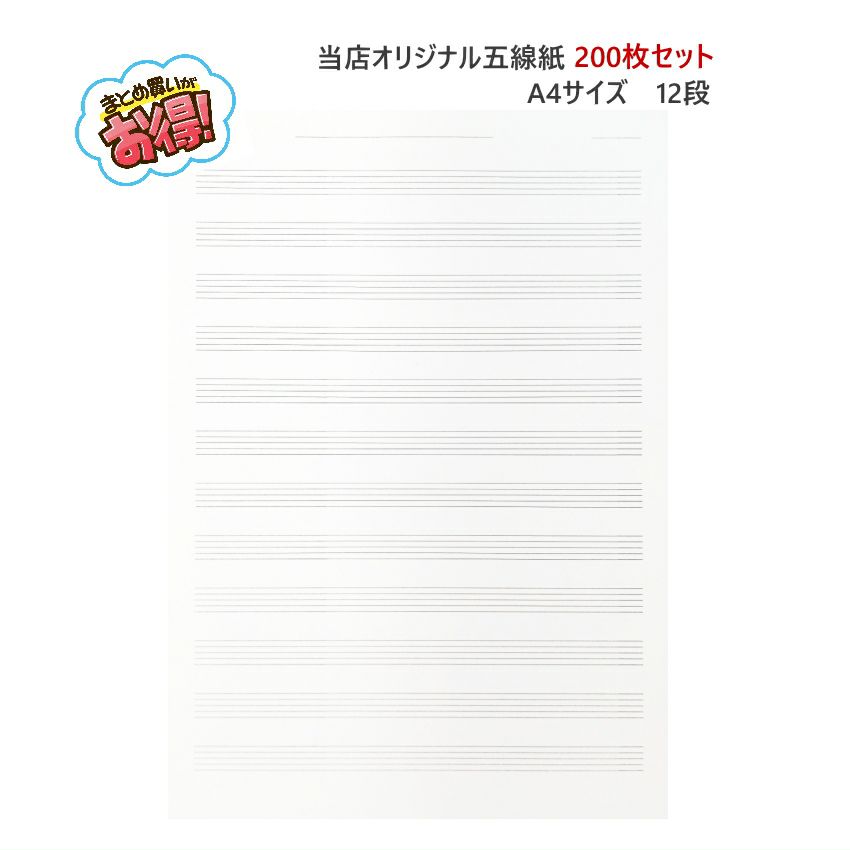 五線紙 A4サイズ 片面12段 200枚入り お得 シェア 5線 五線譜 五線ノート ソルフェージュ 作曲