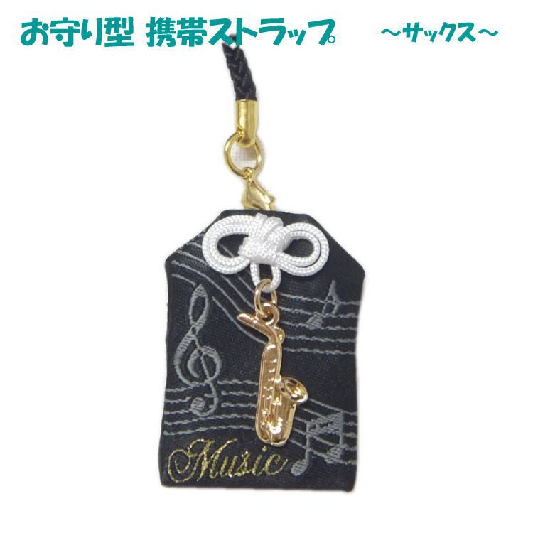 【携帯ストラップ】お守りストラップ サックス型 チャーム付き 〜吹奏楽部などのサックス奏者にオススメ!〜【メール便対応 20点まで】