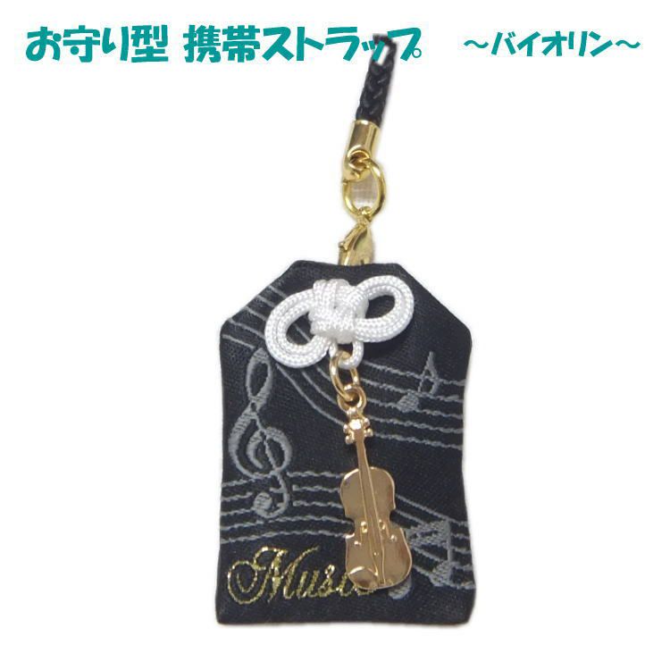 【携帯ストラップ】お守りストラップ バイオリン型 チャーム付き 〜発表会やコンクールのお守りとしてオススメ〜【メール便対応 20点まで】