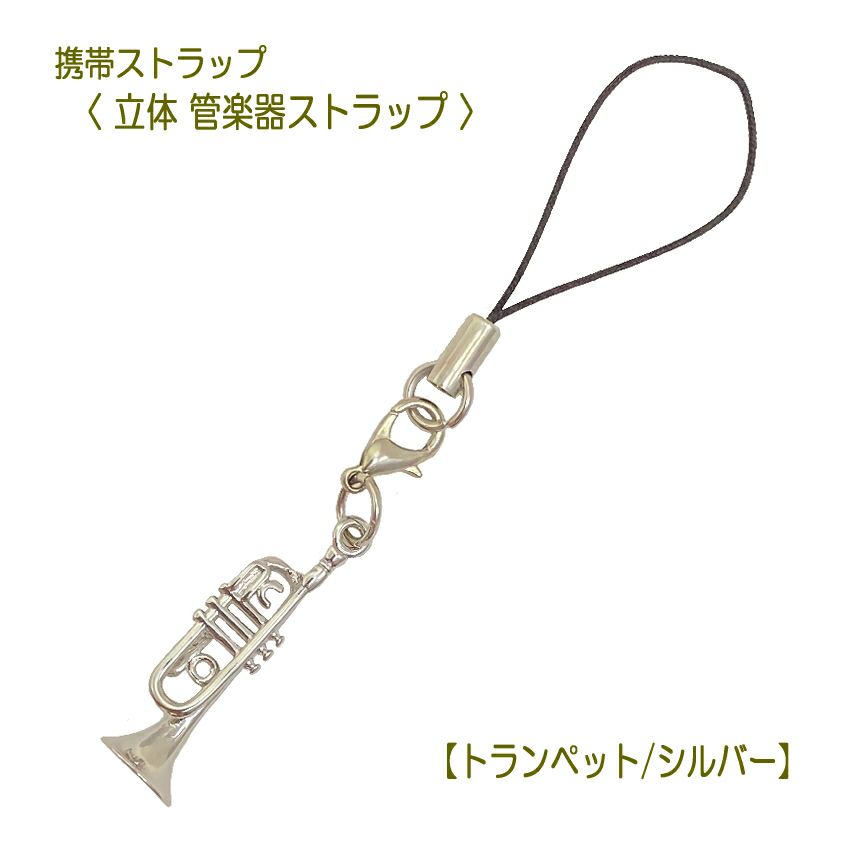 【携帯ストラップ】立体 管楽器ストラップ トランペット シルバー (立体楽器 金管楽器 吹奏楽部 AD6015-3)【メール便対応 20点まで】