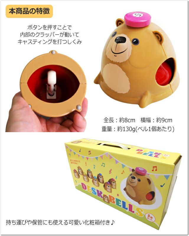 他の画像を見る クマのデザインが可愛いデスクベル キョーリツ ミュージックベル デスクベル 8音セット タッチ式 クマデザイン MB-8DB 送料無料 販売価格 ¥ 10,120 税込 カートに入れる お気に入りに登録する