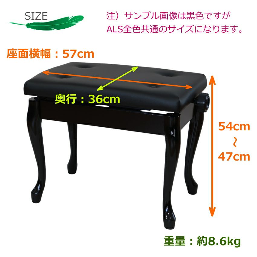 定番の角形無段階昇降ピアノ椅子【新高低ピアノ椅子】ALのネコ脚タイプ