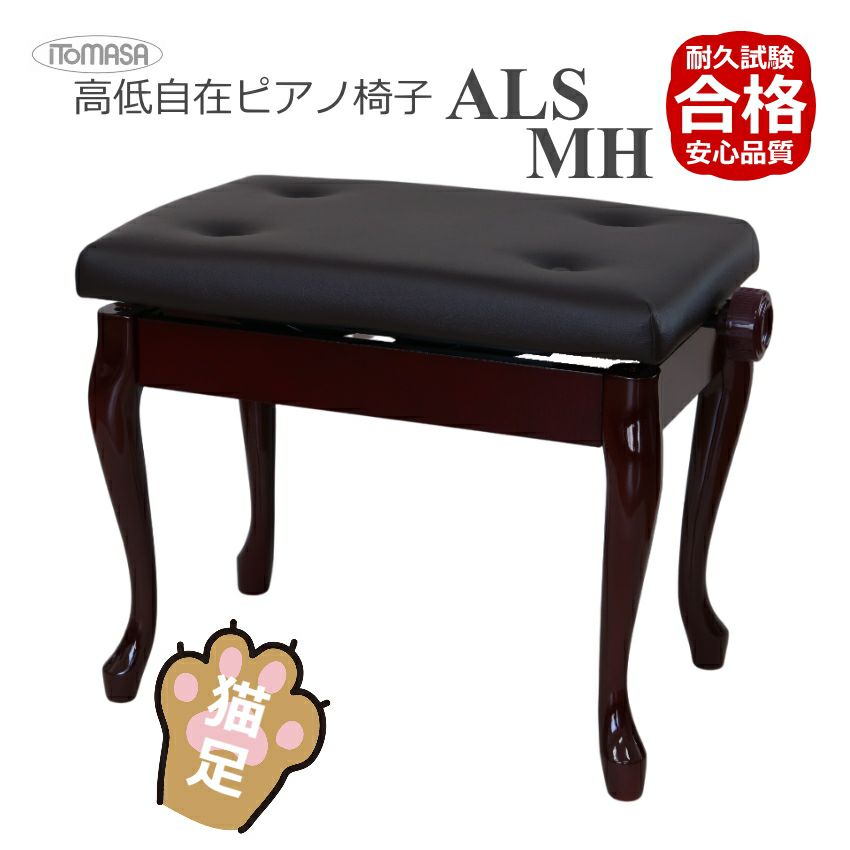 耐久試験合格機種 座面が布仕様 高低自在ピアノ椅子 猫足タイプ 【イトマサ/ITOMASA】 猫足タイプ ピアノ椅子の定番 AN ANS-MH/ANS-WN マホガニー/ウォルナット■布張り仕様 角形新高低ピアノ椅子 組み立て式