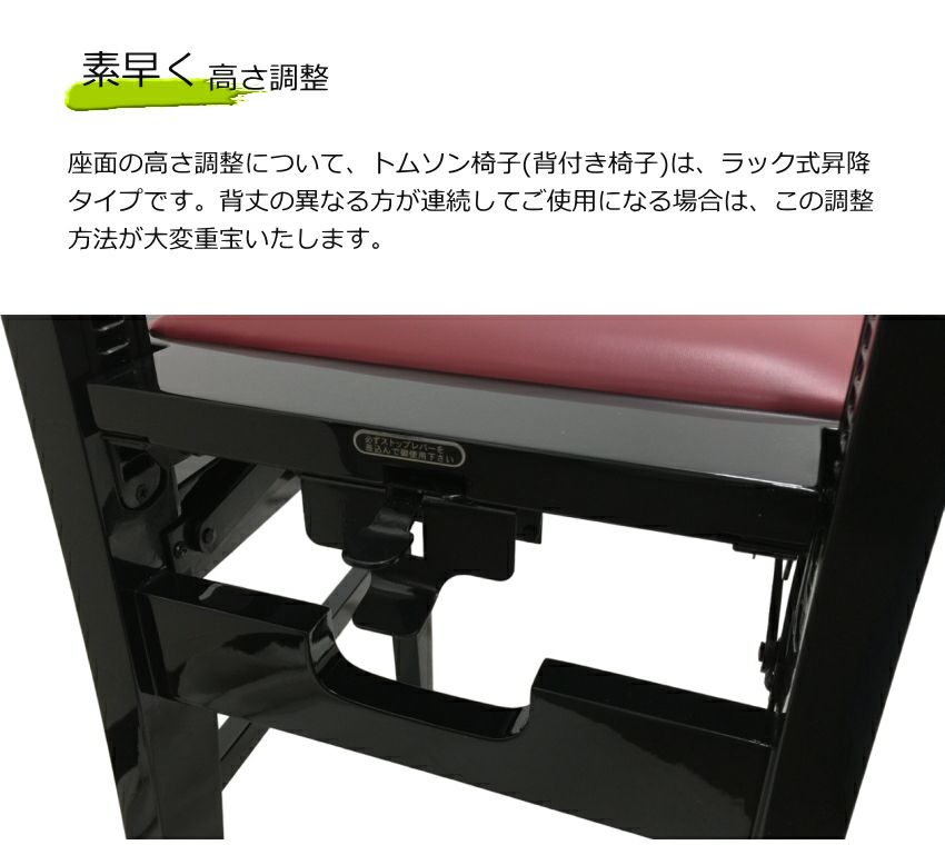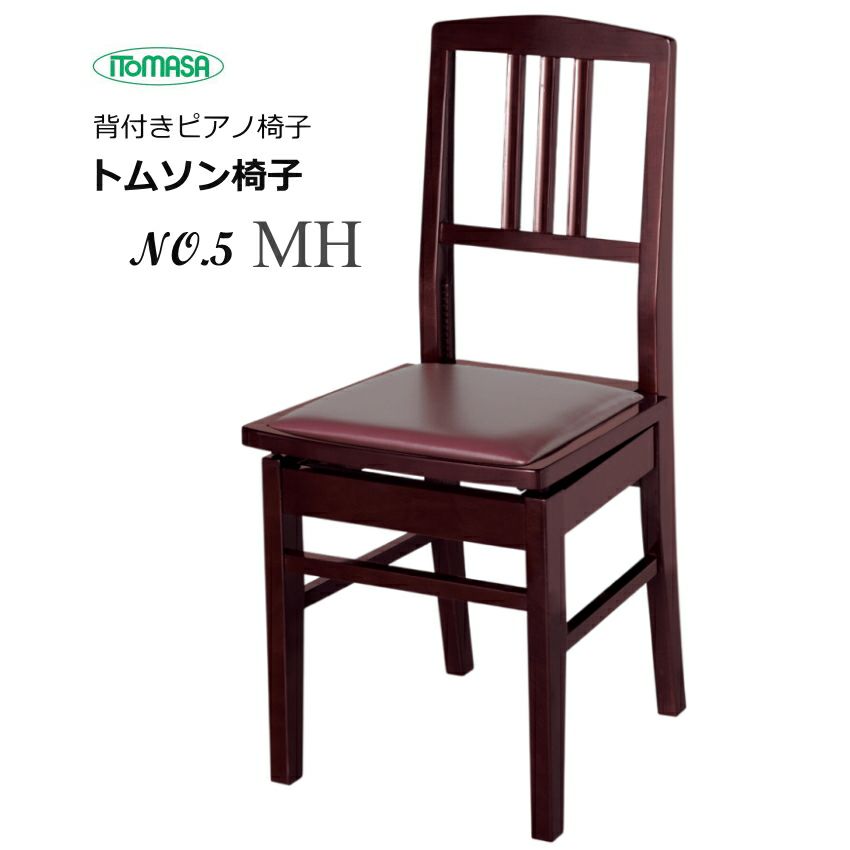 ITOMASAの 背付き ピアノ椅子 NO5【座部エンジ】背もたれ付き ピアノ椅子 イトマサ トムソン椅子 コンサートホール定番タイプ ピアノイス「床~座部55cmまで上がる」 幼児や子供に最適なピアノ椅子また長時間演奏向き