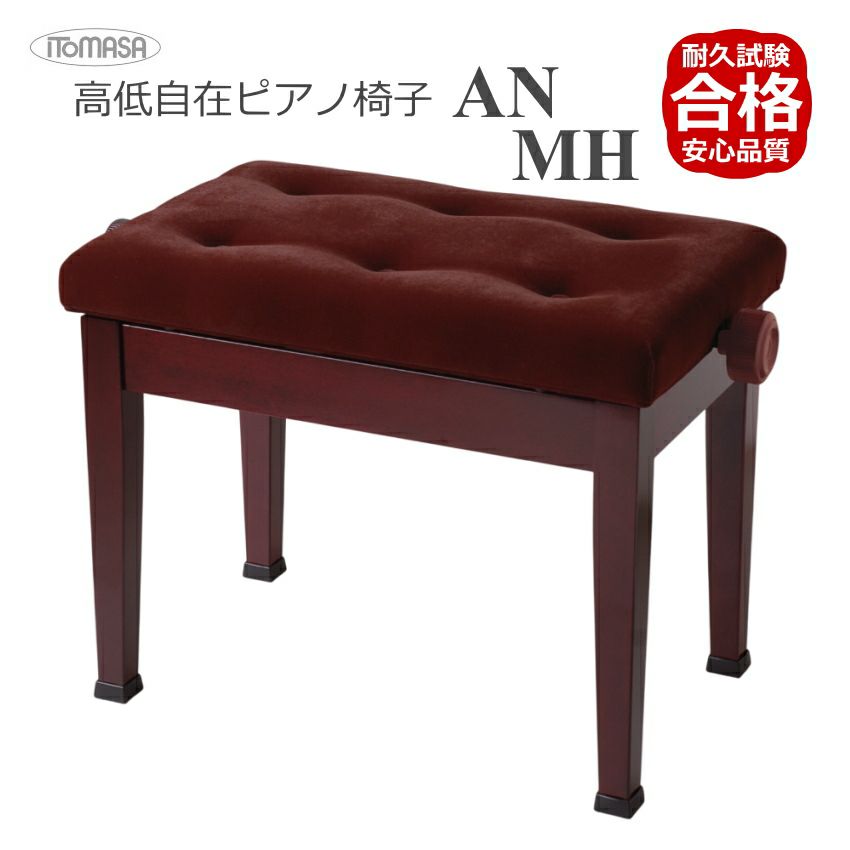 耐久試験合格機種 座面が布仕様 高低自在ピアノ椅子 【イトマサ/ITOMASA】 ピアノ椅子の定番 AN AN-MH AN-WN マホガニー ウォルナット■布張り仕様 角形新高低ピアノ椅子 組み立て式
