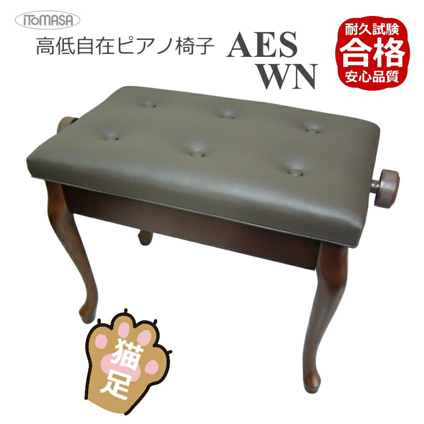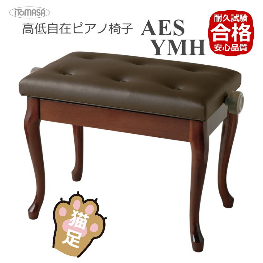 当店で一番売れているピアノ椅子AEの猫脚タイプ 猫脚タイプピアノ椅子 高さ調整 約46cm~54cm イトマサ AES 新高低自在椅子 ピアノイス■木製高低自在角形 6ボタン座部両ハンドルタイプ