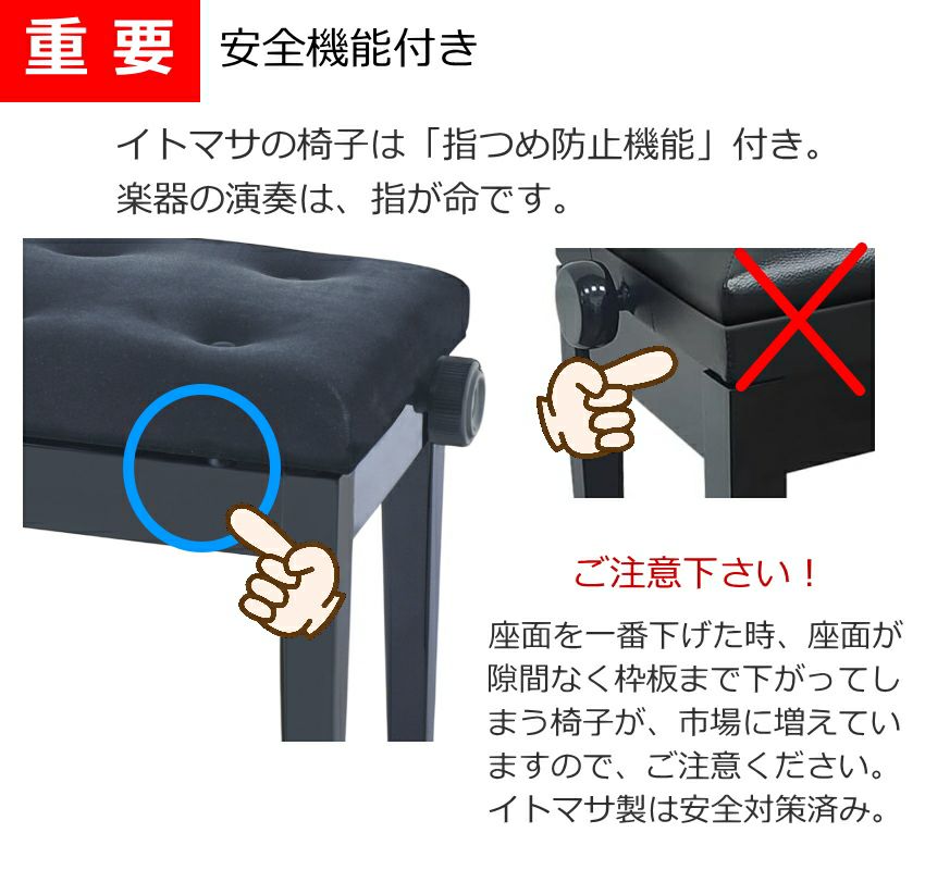 定番の角形無段階昇降ピアノ椅子【新高低ピアノ椅子】