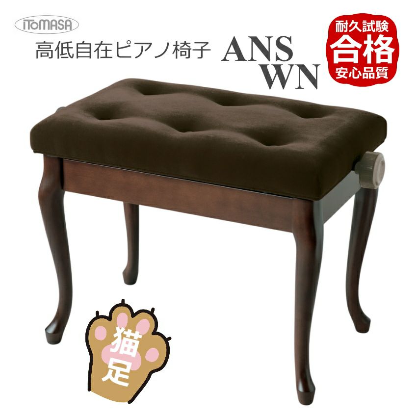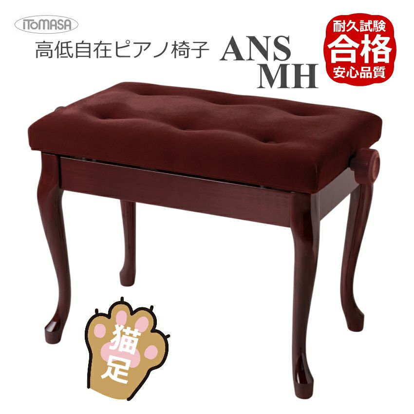 耐久試験合格機種 座面が布仕様 高低自在ピアノ椅子 猫足タイプ 【イトマサ/ITOMASA】 猫足タイプ ピアノ椅子の定番 AN ANS-MH/ANS-WN マホガニー/ウォルナット■布張り仕様 角形新高低ピアノ椅子 組み立て式