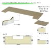 4タイプに奥行き60cmの標準タイプと70cmのワイドタイプが、また、それぞれに「ベージュ」と「グレイ」および「ダークブラウン」の3色が発売されております。(2014年12月現在)