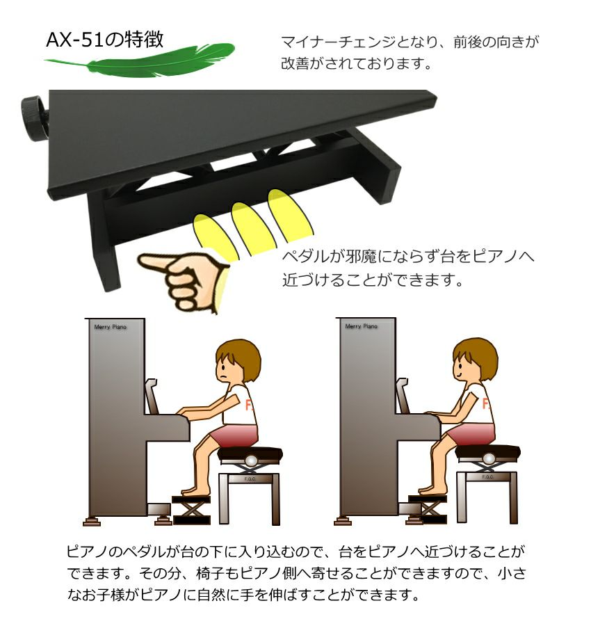 他の画像を見る 簡単昇降「フリーストップ式」 ピアノ補助ペダル AX-T1(台付き補助ペダル):ピアノ用 ペダル付き足台 AXT1 送料無料 販売価格 ¥ 21,499 税込 カートに入れる お気に入りに登録する