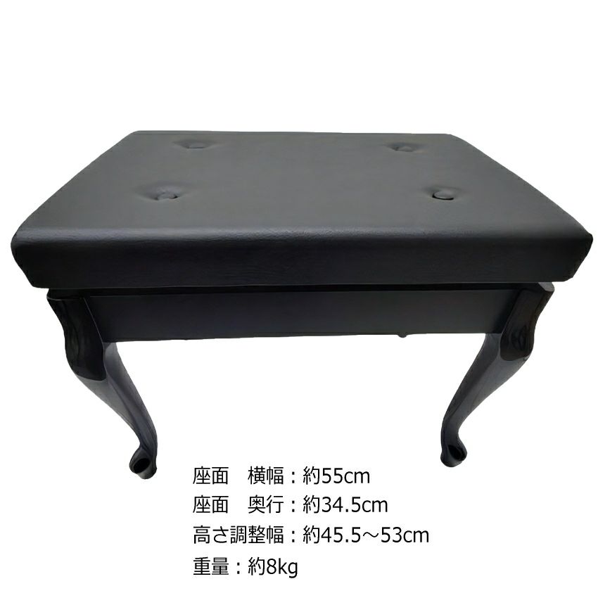 他の画像を見る 猫脚/ヤマハピアノ用 黒色/合皮レザー4ボタン/両ハンドル昇降 日本製■猫脚タイプ ピアノ椅子「甲南AW-55C」ヤマハピアノAW55C用黒色/定番AW55C ネコ脚タイプ 送料無料 販売価格 ¥ 19,299 税込 カートに入れる お気に入りに登録する