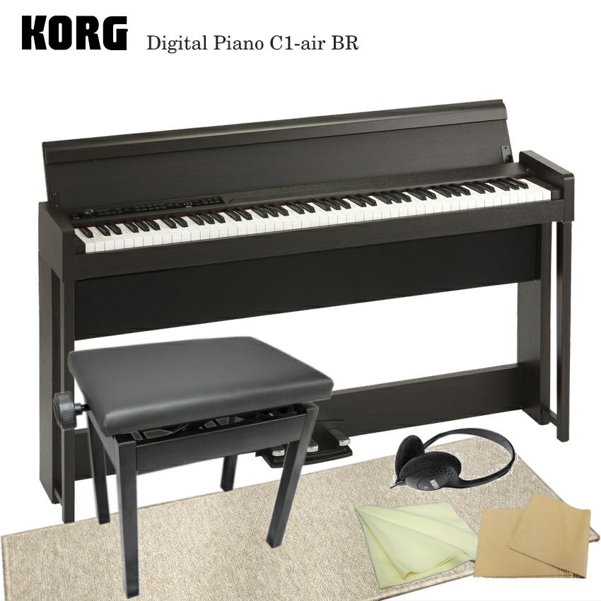 コルグ 電子ピアノ C1-air ブラウン「ピアノ椅子と防音マット付」KORG C1-air BR【Bluetooth対応】