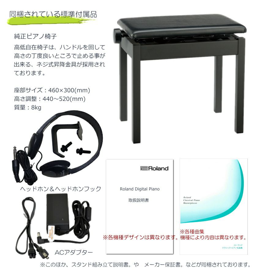 ローランド純正のマット付きです。打鍵音や床に伝わる振動を軽減してくれます。