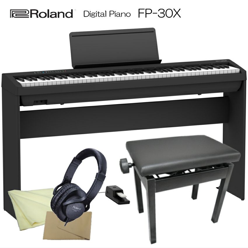 ローランド 電子ピアノ FP-30X ブラック Roland 88鍵デジタルピアノ「木製スタンド/ペダルDP-10/新高低椅子」