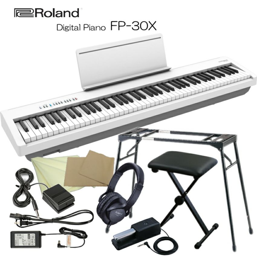 ローランド 電子ピアノ FP-30X ホワイト Roland 88鍵デジタルピアノ「テーブル型スタンド/折りたたみ椅子」