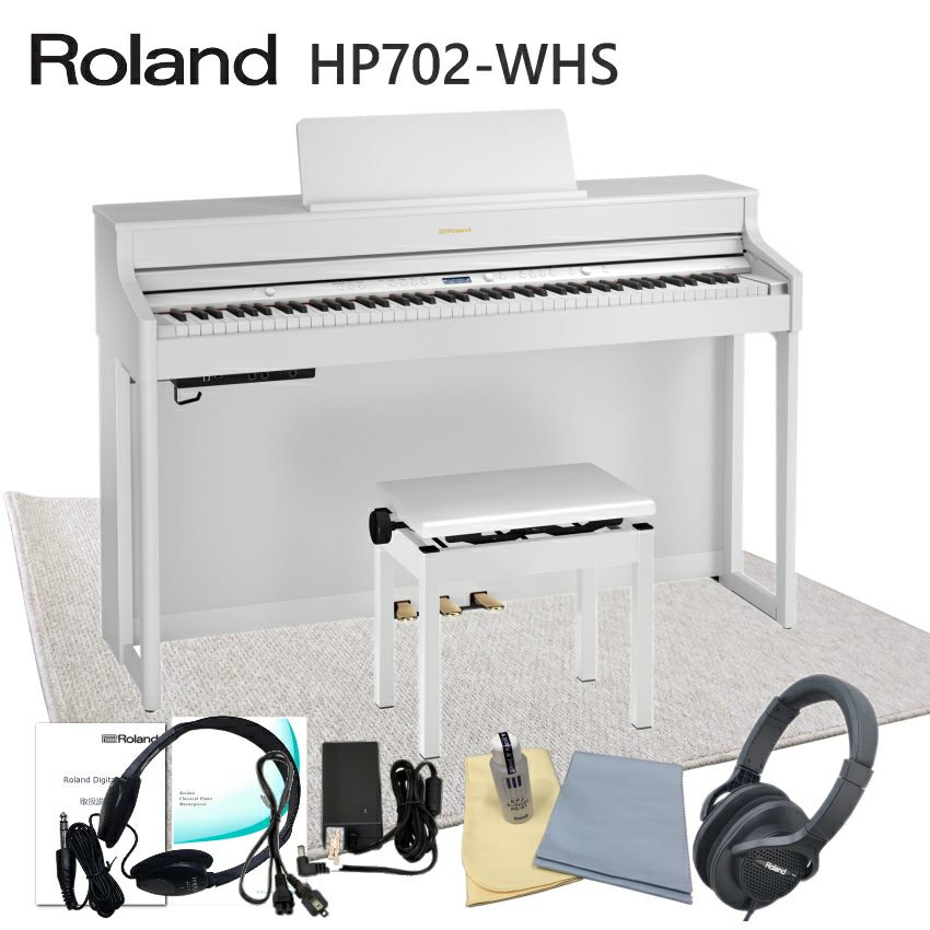【運送・設置付】ローランド HP702 ホワイト「防音ジュータン付」Roland 電子ピアノ 自宅練習用の人気デジタルピアノ HP702-WHS■代引不可