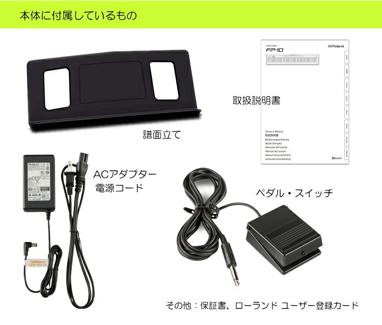 他の画像を見る ピアノ鍵盤のクリック感まで再現【ローランド電子ピアノ】 ローランド 電子ピアノ 88鍵盤 FP-10 Roland 鍵盤タッチが良いデジタルピアノ 日時指定不可 代引き不可 送料無料 販売価格 ¥ 69,850 税込 在庫切れ 詳細を見る お気に入りに登録する