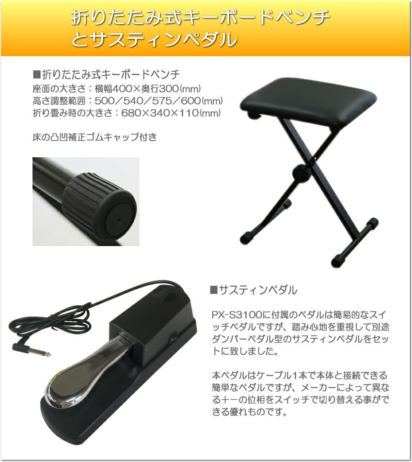 他の画像を見る 多機能タイプのCASIO Privia PX-S3000の後継機種【Privia】 カシオ プリヴィア PX-S3100 X型スタンド&椅子付き 日時指定不可 送料無料 販売価格 ¥ 93,600 税込 カートに入れる お気に入りに登録する