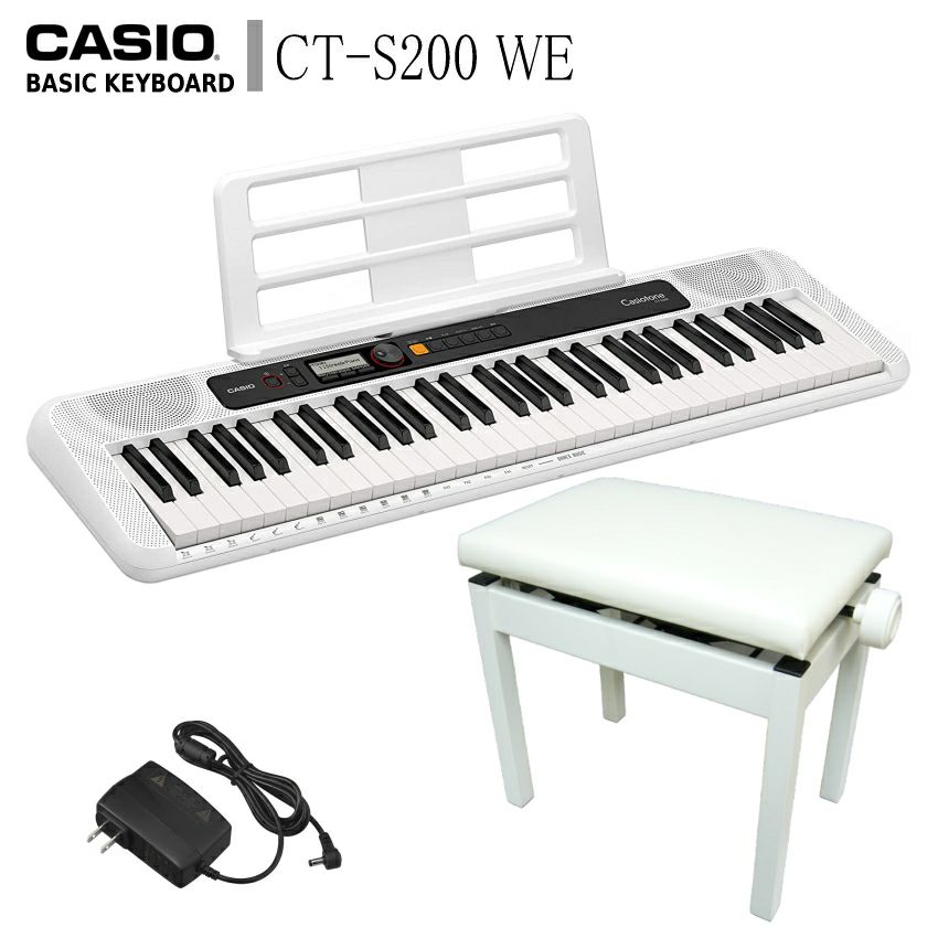 リハビリに最適 楽しみながら指運動【同時発音数48音】 食卓テーブルでリハビリに最適【昇降ピアノ椅子(白)付】最もシンプルな61鍵盤 CASIO キーボード CT-S200 WE ホワイト カシオトーン