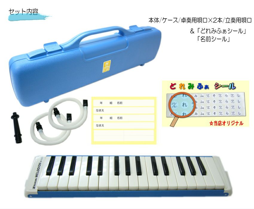 他の画像を見る 当店オリジナル「どれみふぁシールプレゼント」 【予備の卓奏用唄口付き】鈴木 鍵盤ハーモニカ メロディオン M-32C ブルー 学校用 SUZUKI 送料無料 販売価格 ¥ 7,400 税込 カートに入れる お気に入りに登録する