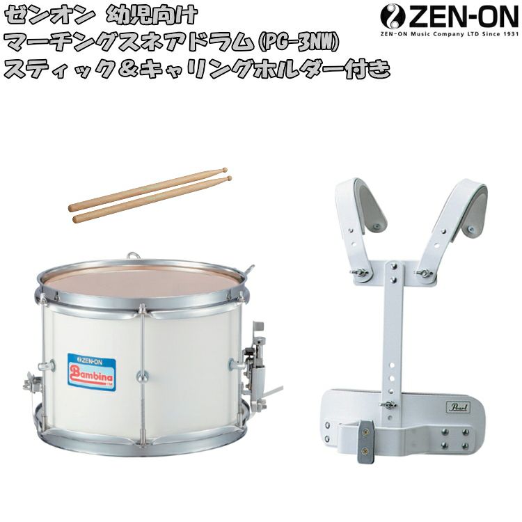 ゼンオン バンビーナ幼児向けマーチング(スネア)白 打面25cm(PG-3NW)PG-3NW-SET3(マーチングバンドの定番の太鼓・保育園・幼稚園で人気)