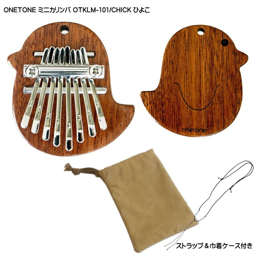 ONETONE ストラップ&巾着ケース付き ミニカリンバ OTKLM-101/CHICK ひよこ型 マホガニー材 親指ピアノ 8キー ワントーン