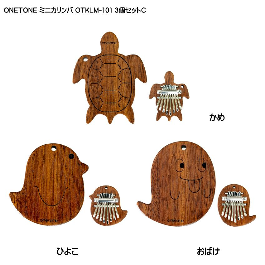 ONETONE ストラップ付き ミニカリンバ 3個セットC かめ・ひよこ・おばけ OTKLM-101 マホガニー材 親指ピアノ 8キー ワントーン