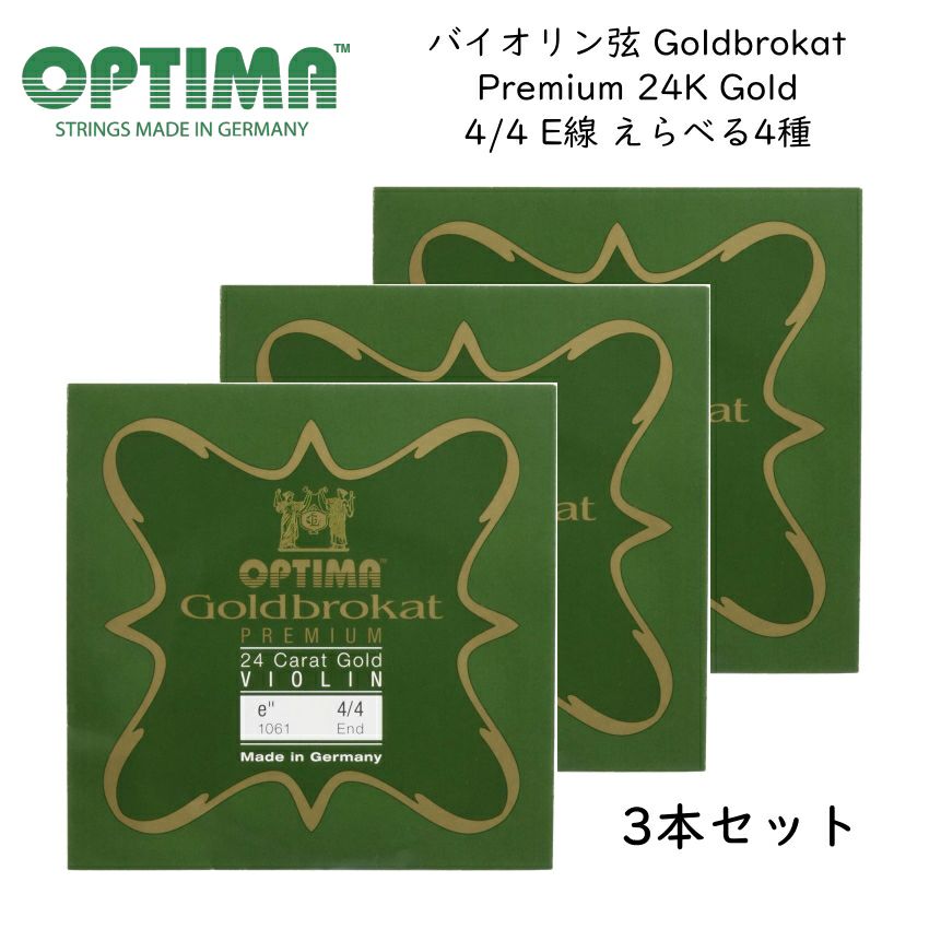 3本セット■OPTIMA Goldbrokat バイオリン弦 4/4サイズ E線 Premium 24K Gold プレミアム 24K ゴールド ゴールドブロカット オプティマ 旧レンツナー【メール便対応 5点まで】