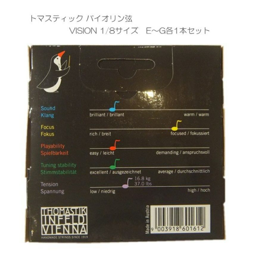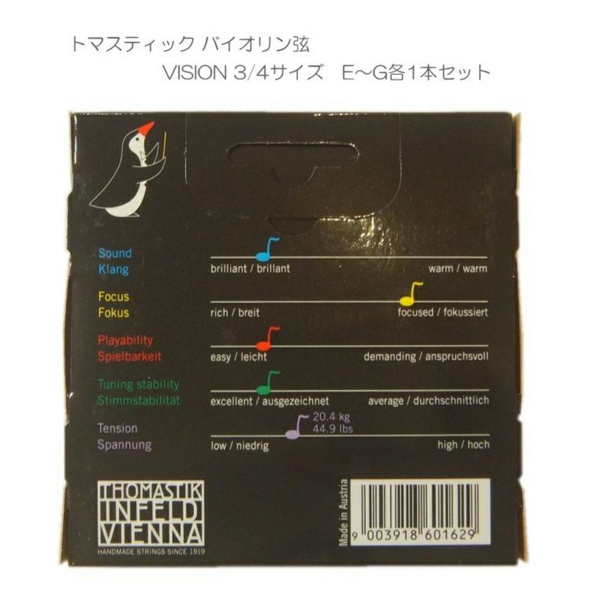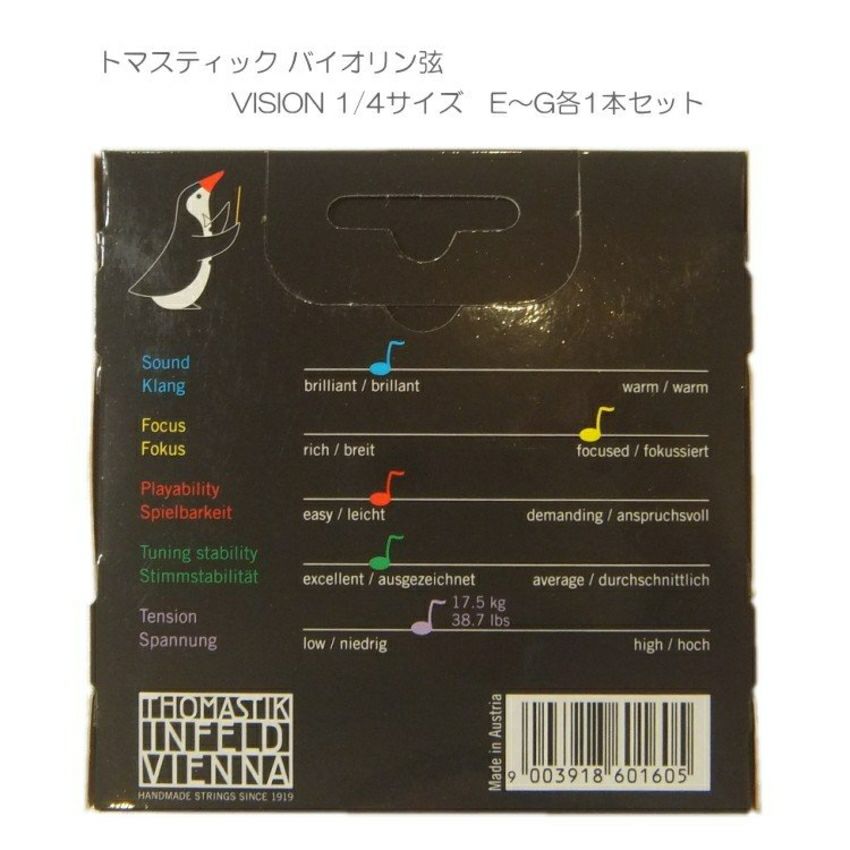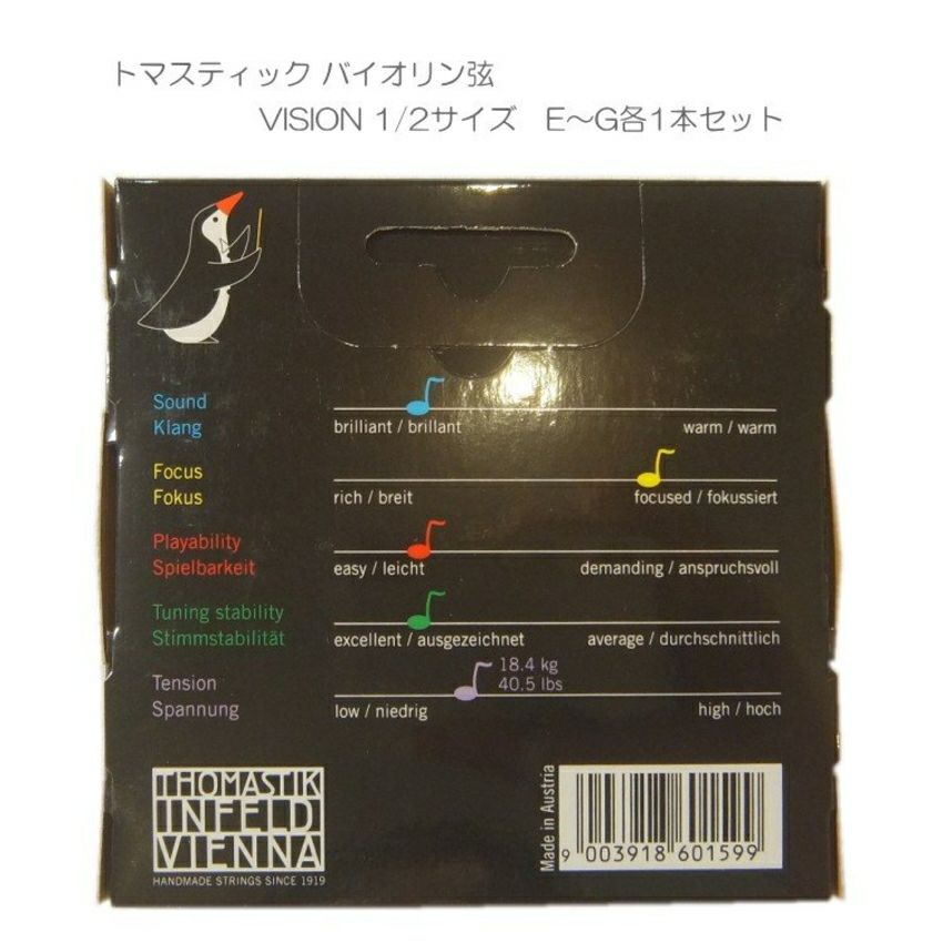 他の画像を見る ドミナントの弟分 VISION バイオリン弦【1/2 セット弦】 VI100 1/2 トマスティック社 ヴィジョン(ビジョン) バイオリン ナイロン弦 サイズ1/2【セット】 日時指定不可 代引き不可 送料無料 メール便 販売価格 ¥ 6,719 税込 カートに入れる お気に入りに登録する