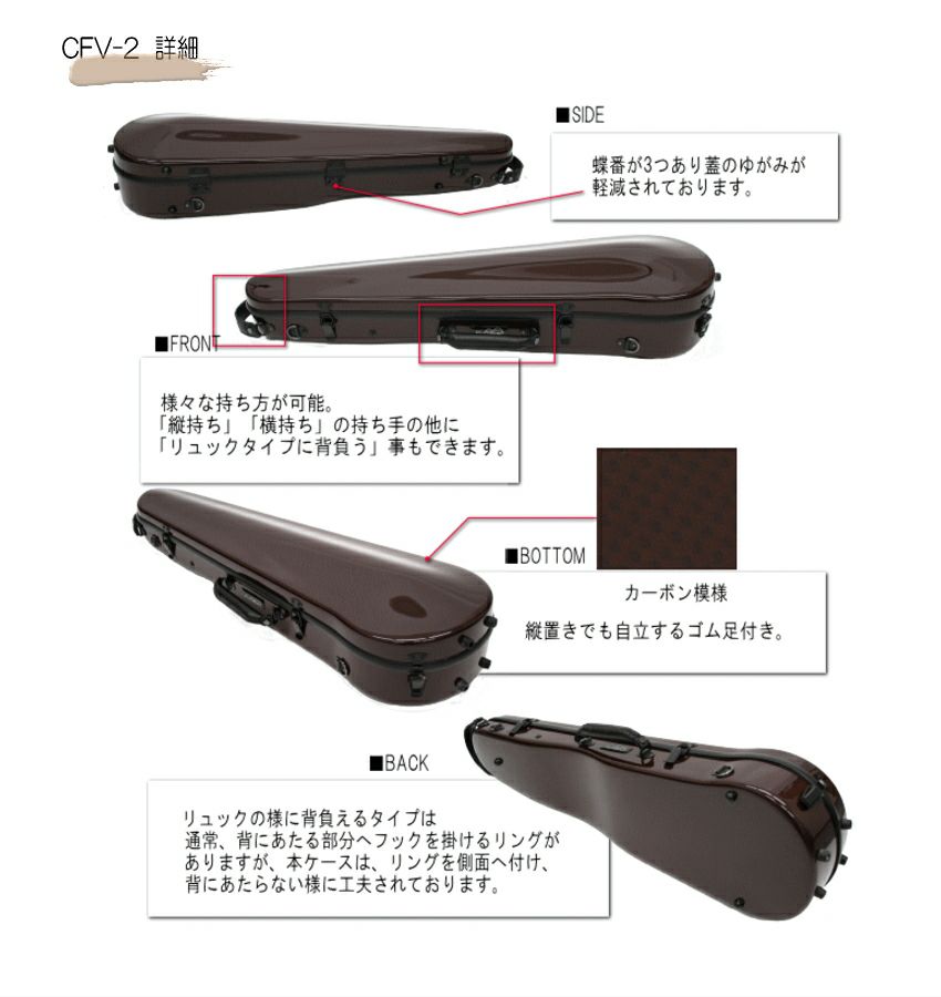 他の画像を見る スリムな形状&サイズ調整機能付き。背負えるバイオリンケース「カーボンマック」 カーボンファイバー製 バイオリン ケースCFV-2【チョコブラウン】バイオリンハードケース CFV2-BRN 送料無料 販売価格 ¥ 55,000 税込 カートに入れる お気に入りに登録する