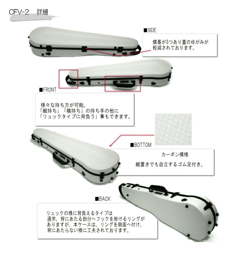 他の画像を見る スリムな形状&サイズ調整機能付き。背負えるバイオリンケース「カーボンマック」 カーボンファイバー製 バイオリン ケースCFV-2【ホワイト】バイオリンハードケース CFV2-WHT 送料無料 販売価格 ¥ 55,000 税込 カートに入れる お気に入りに登録する