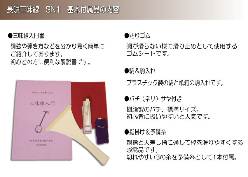 他の画像を見る 名取も認める品質【学校や教室導入レベル】 初心者向け 長唄三味線 SN1 日本和楽器製造「すぐに弾ける基本セット+長袋」 送料無料 販売価格 ¥ 72,560 税込 在庫切れ 詳細を見る お気に入りに登録する