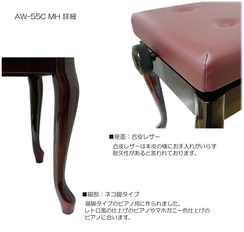 他の画像を見る ネコ脚タイプのピアノにお勧めの 角形ピアノ椅子 日本製■猫脚タイプ ピアノ椅子「甲南AW55C」ヤマハピアノ用マホガニ色 販売価格 ¥ 23,469 税込 在庫切れ 詳細を見る お気に入りに登録する