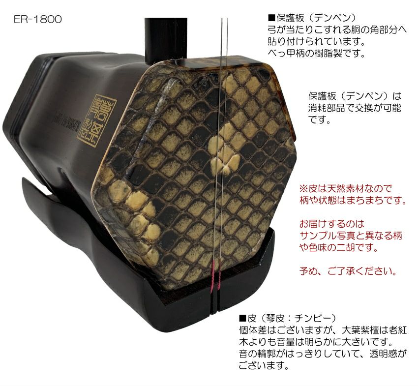 他の画像を見る 大変鳴らしやすい上手に聞こえる二胡【大葉紫檀/錦蛇皮】 中国二胡 古月琴坊 ER-1800(大葉紫檀/錦蛇皮)9点セット 送料無料 販売価格 ¥ 187,792 税込 カートに入れる お気に入りに登録する