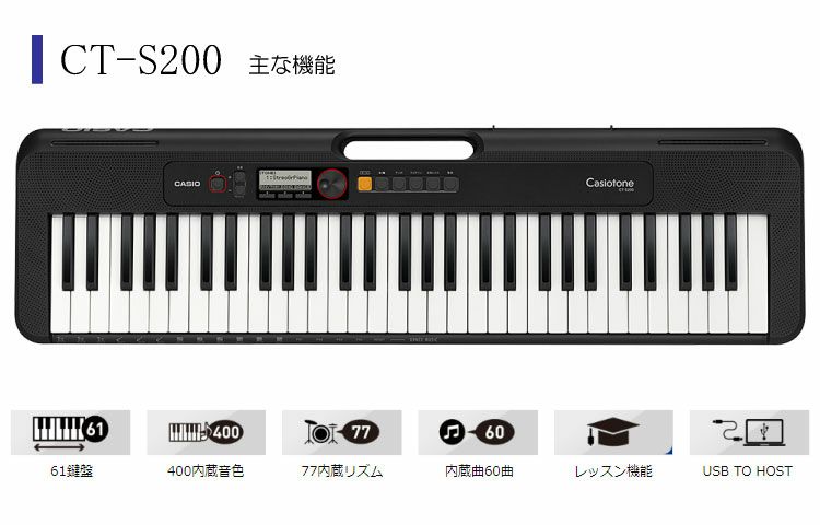 他の画像を見る カシオベーシック キーボード61鍵盤【シンプル61Key】 カシオ キーボード CT-S200 CASIO ブラック BK 持ち運びやすい 電子ピアノ ダンスミュージック 送料無料 販売価格 ¥ 17,700 税込 カートに入れる お気に入りに登録する